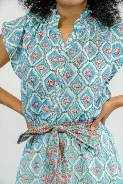 The Bays Blouse features a relaxed fit, ruffled collar, small flutter sleeve, and a button-down front. Providing both style and comfort, this blouse is perfect for any occasion.