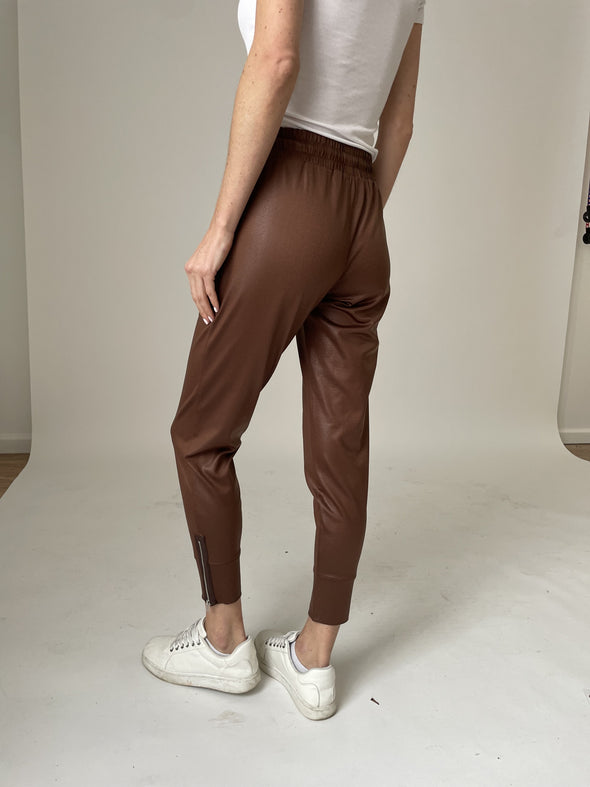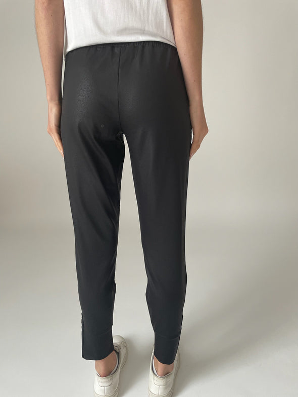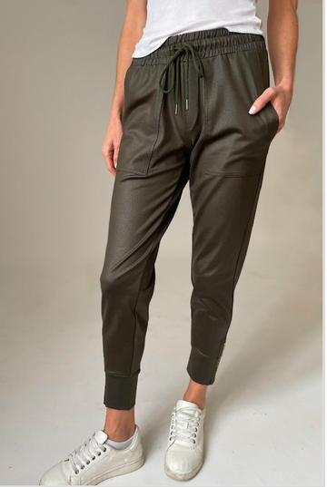 Dress up this jogger: The coated leather-like finish on these joggers can be easily styled up with a flowy blouse and ankle boot for a chic look!
