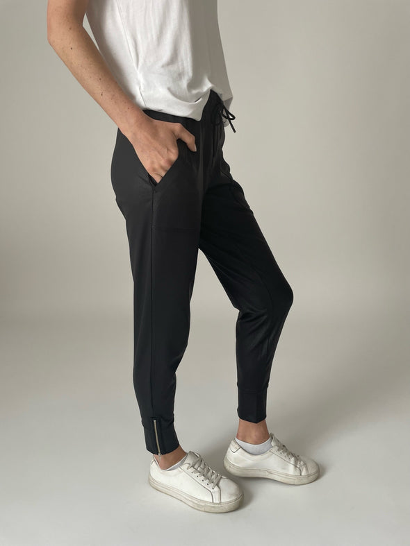 The coated joggers you love are back! Our all time best seller - with a sleek, coated fabric and edgy zipper design this jogger will have you looking stylish all season long.