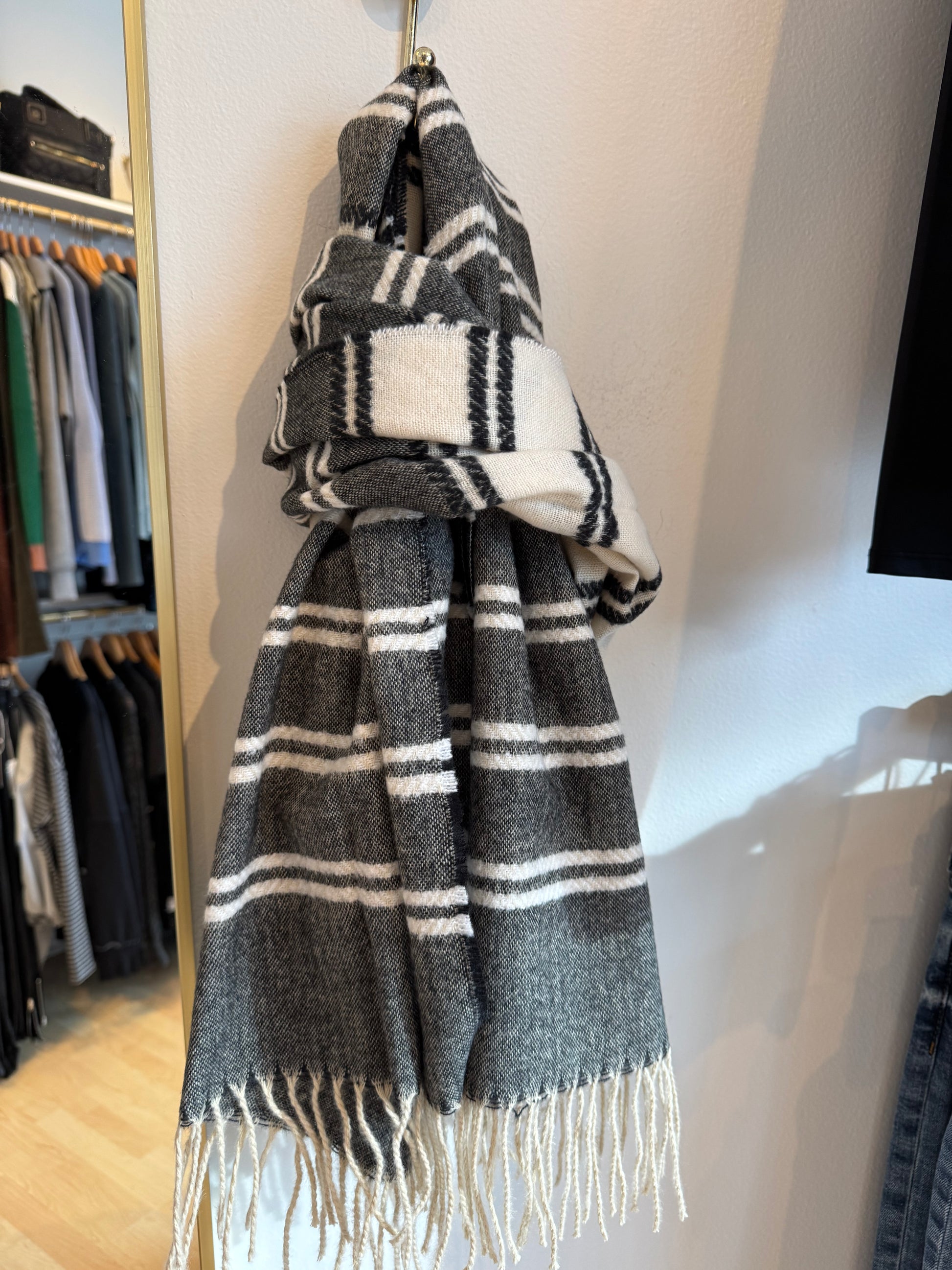 The coziest scarf in a “just right” size that is coziest enough for warmth, but slim enough to wear under your jacket. 100% polyester. 180x65cm.