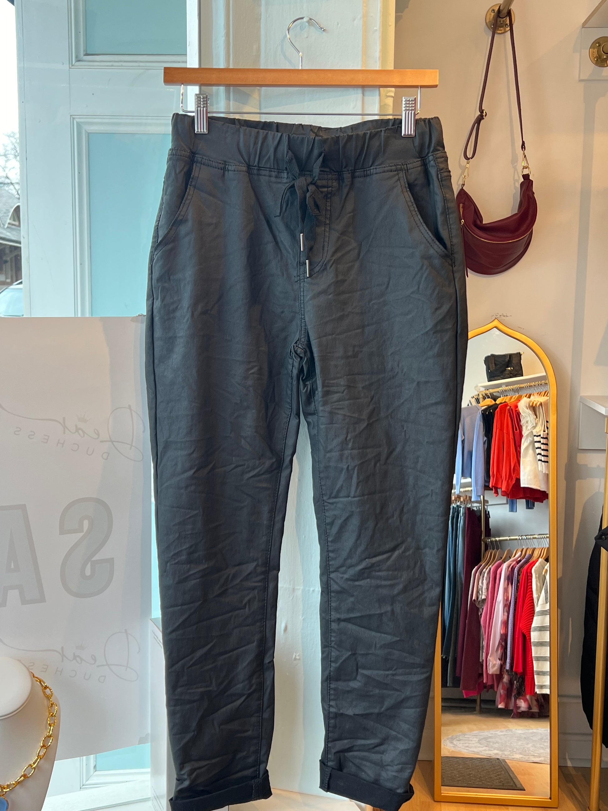 Crinkle Coated Skinny Joggers