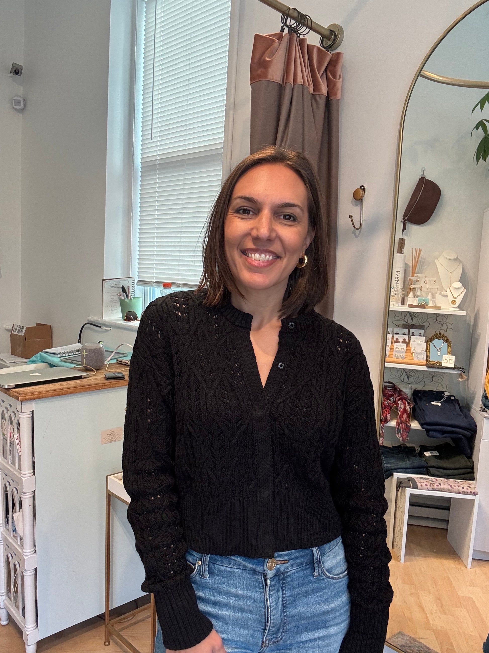 This cropped cardigan is crafted from breathable, 100% cotton with a timeless cable knit design. The Colby features hidden button closures, ribbed trims, and a flattering cropped length. It's perfect for pairing with high-waisted denim or skirts for a modern yet classic look.