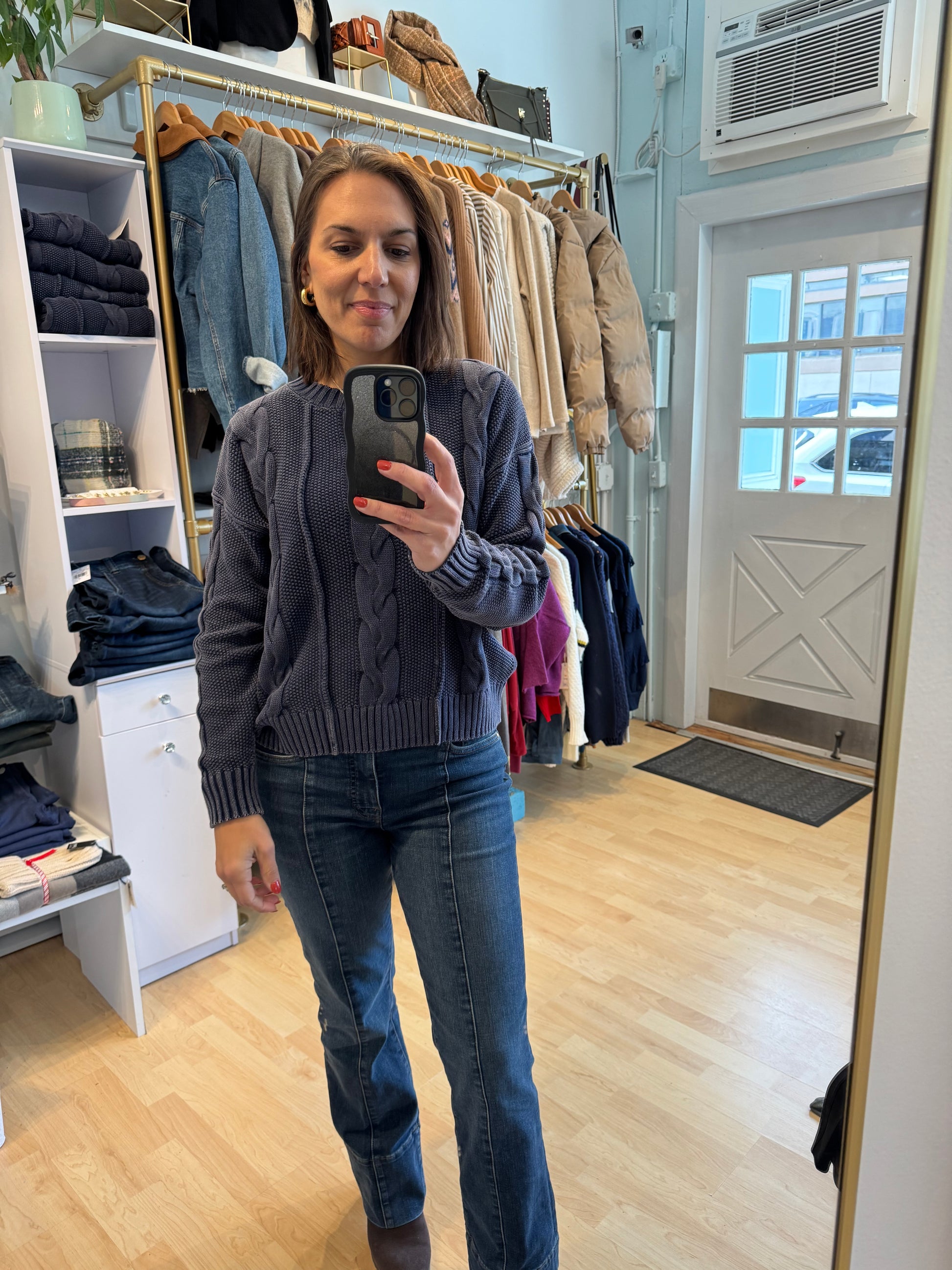 Effortless comfort for your every day style awaits you in Dear John’s Yolani cable knit sweater. Classic vibes with an effortless fit! This cozy sweater will easily complement any style of denim. Features a crew neck, and cable knit in a rich shade of indigo blue.