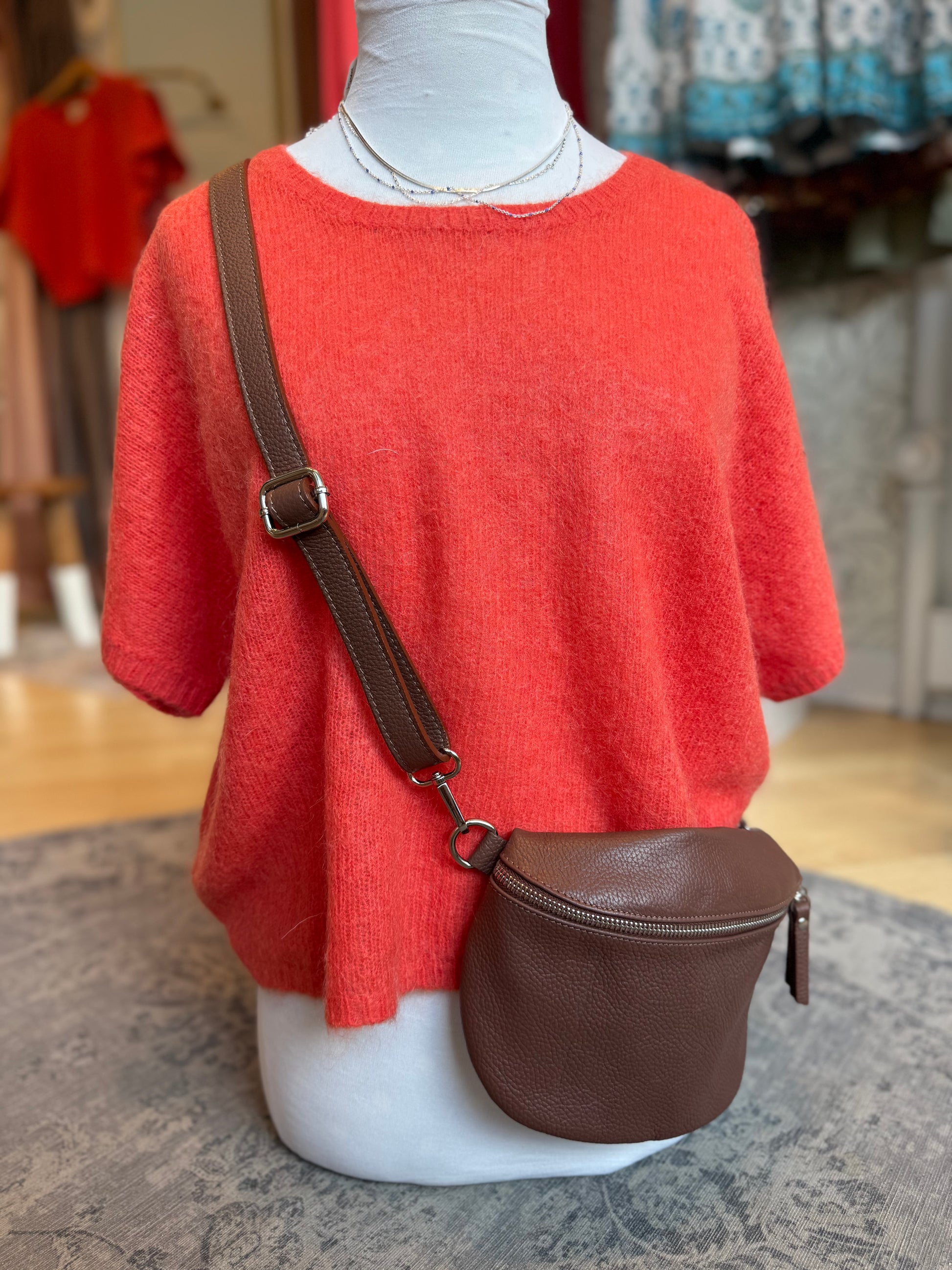 Introducing the Diamond Sweater - an easy, boxy knit designed to pair perfectly with wide-leg denim or tailored trousers. With short sleeves and a slightly cropped length, it delivers effortless style and versatility. Featured in one of fall's standout shades: rich rouge.