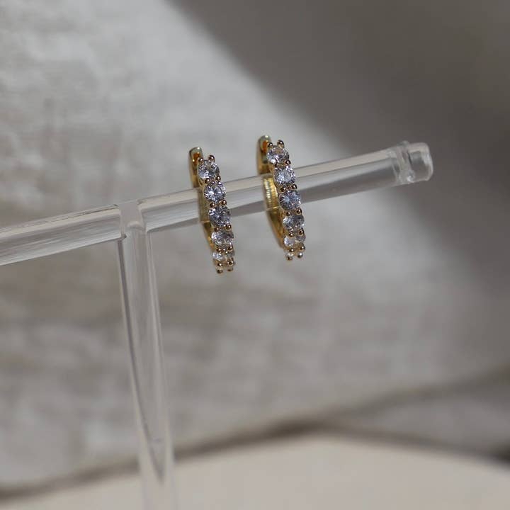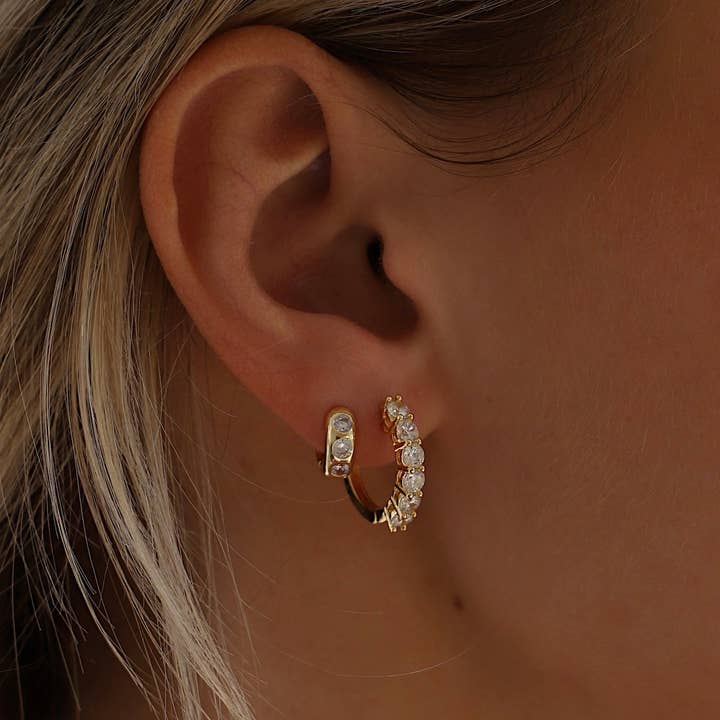 Consider these your everyday upgrade. Sleek, sparkly, and seriously wearable—the CZ Huggie Hoops are what every it-girl throws on without thinking twice. Set with a row of shimmering cubic zirconia, they hug just right and shine from every angle. Perfect solo, stacked, or paired with your favorite studs, they’re low-effort luxe at its finest.