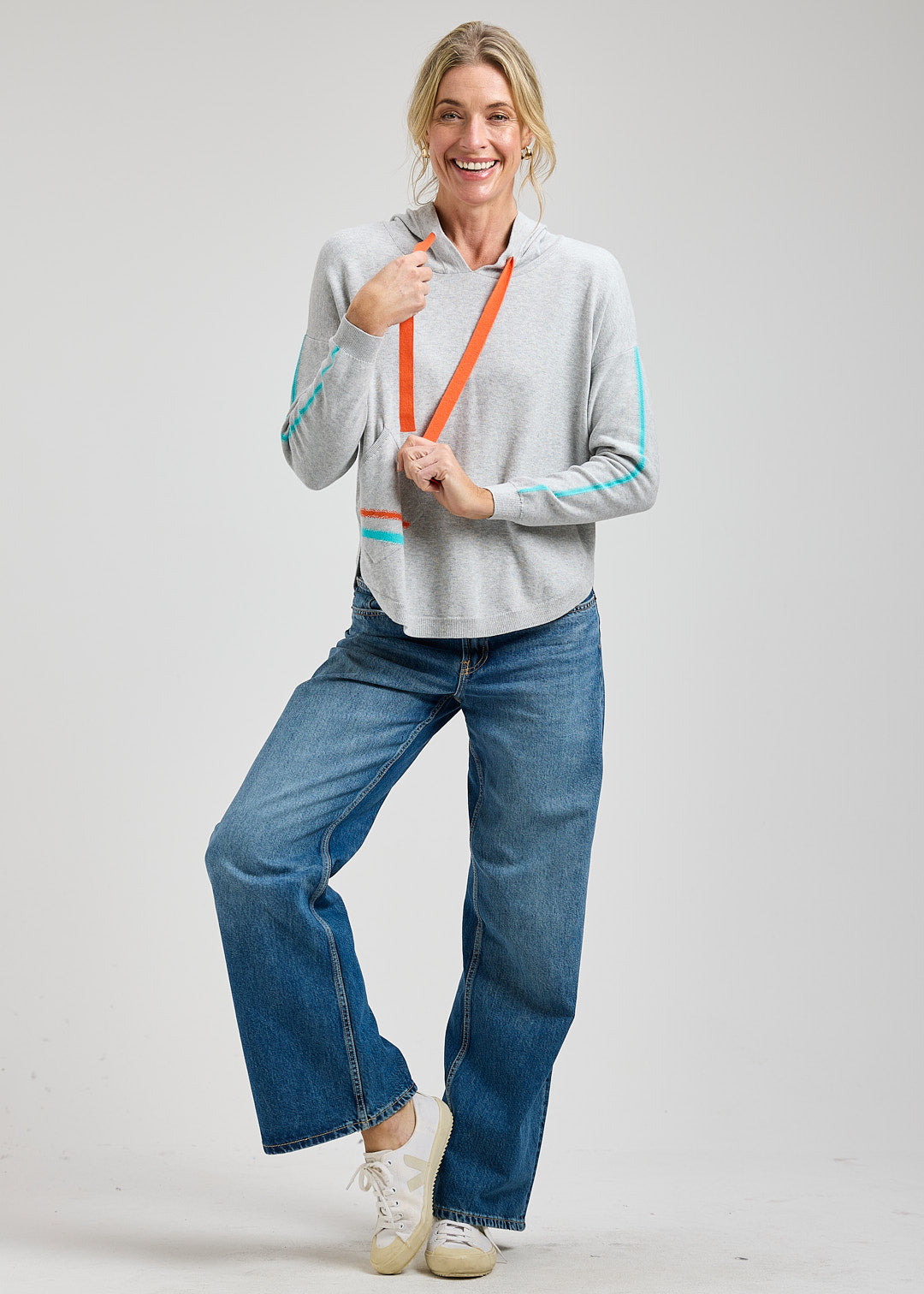 Zaket & Plover adds a touch of whimsy to the classic hooded pullover. The Hooded Sweater captures the essence of the sweatshirt and elevates it with premium cotton and contrast color striped detail. A contrast color drawstring adds a touch of retro flair. Snuggle up in this relaxed and super comfortable knit!