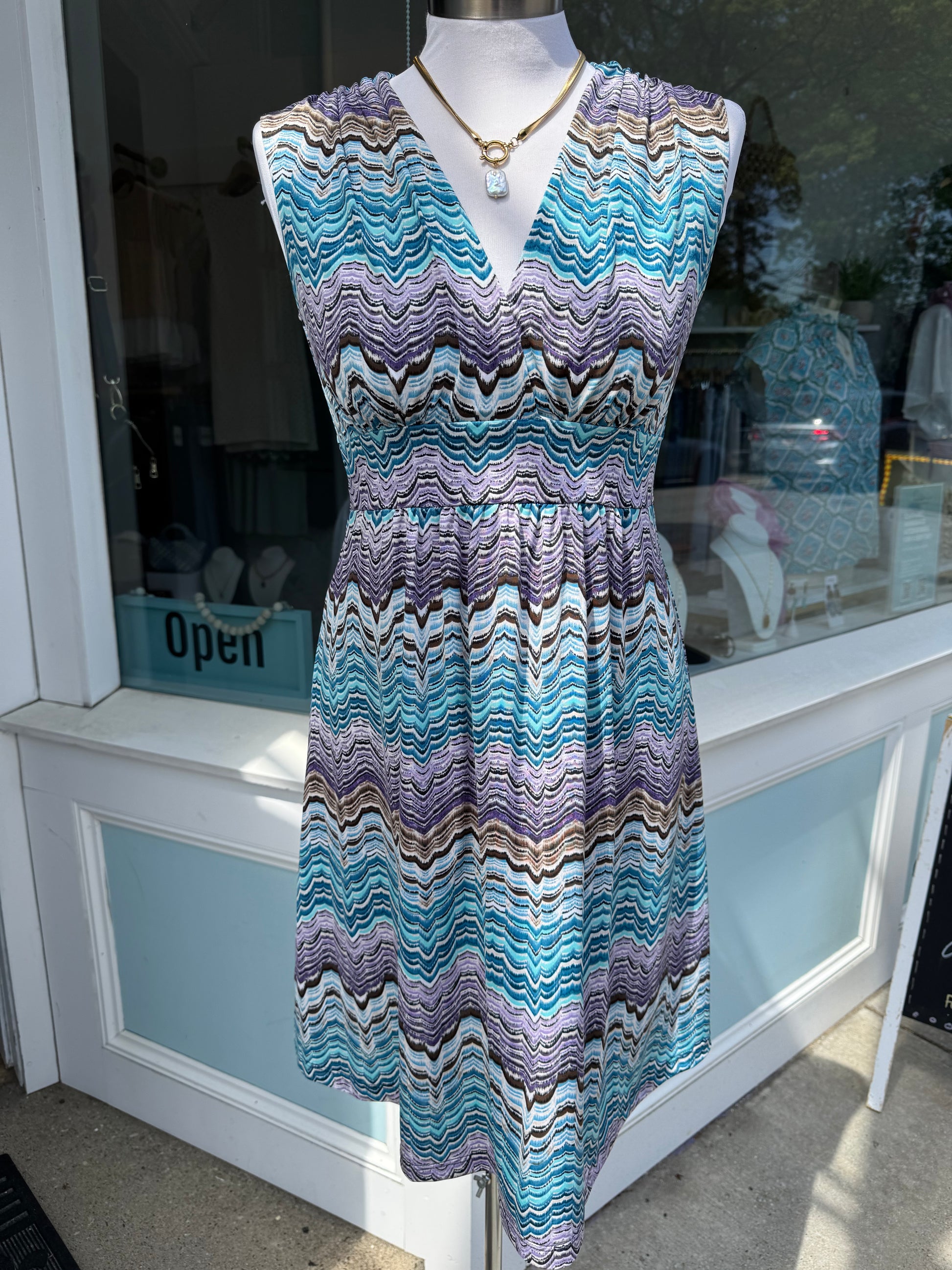 The perfect summer dress has arrived! This fit-flattering dress will earn you all the compliments. Features a flattering surplice v-neckline, band at high waist for a flattering silhouette and a modest knee length. Pack this dress along with you for your summer weekend getaways.