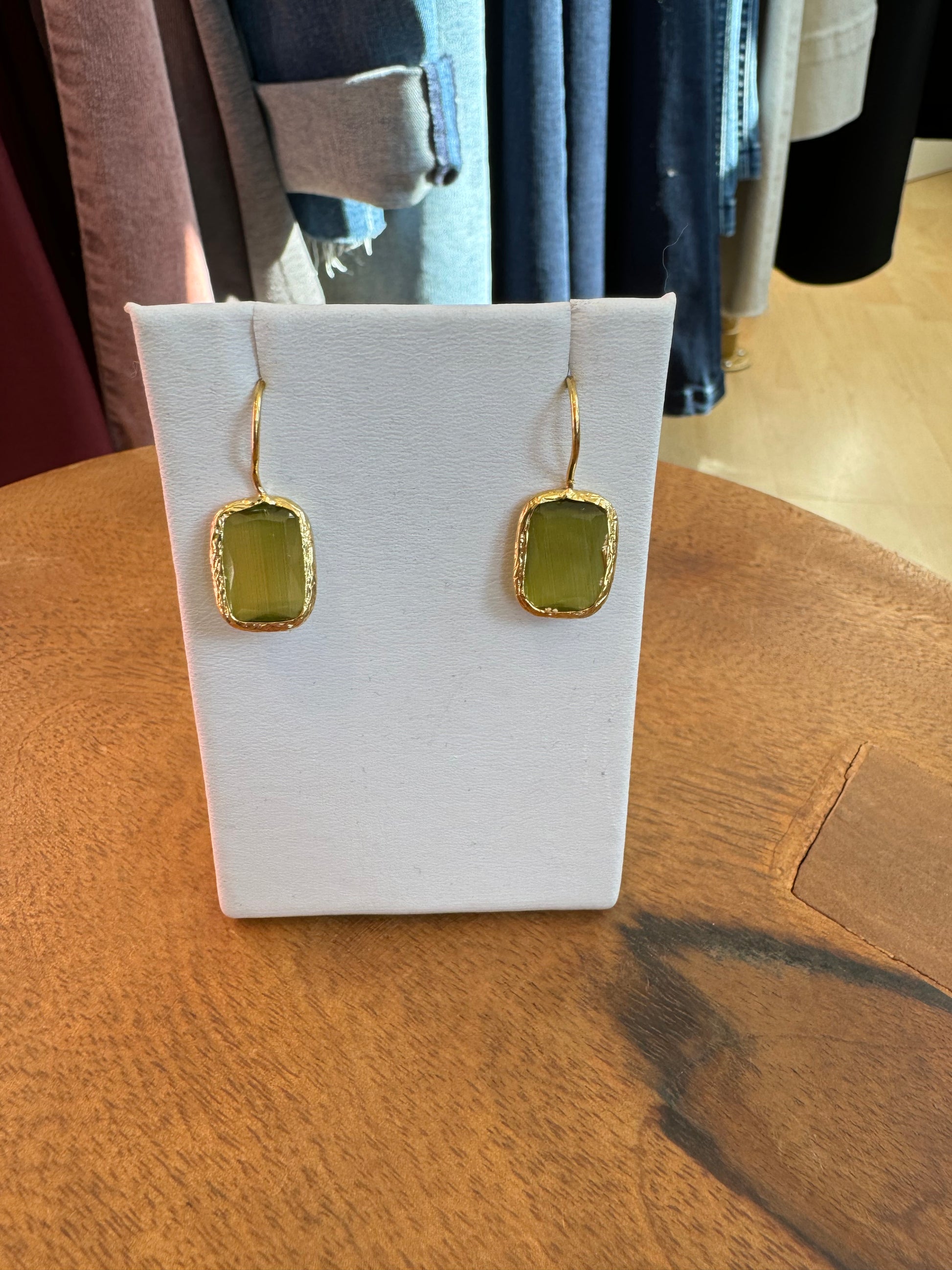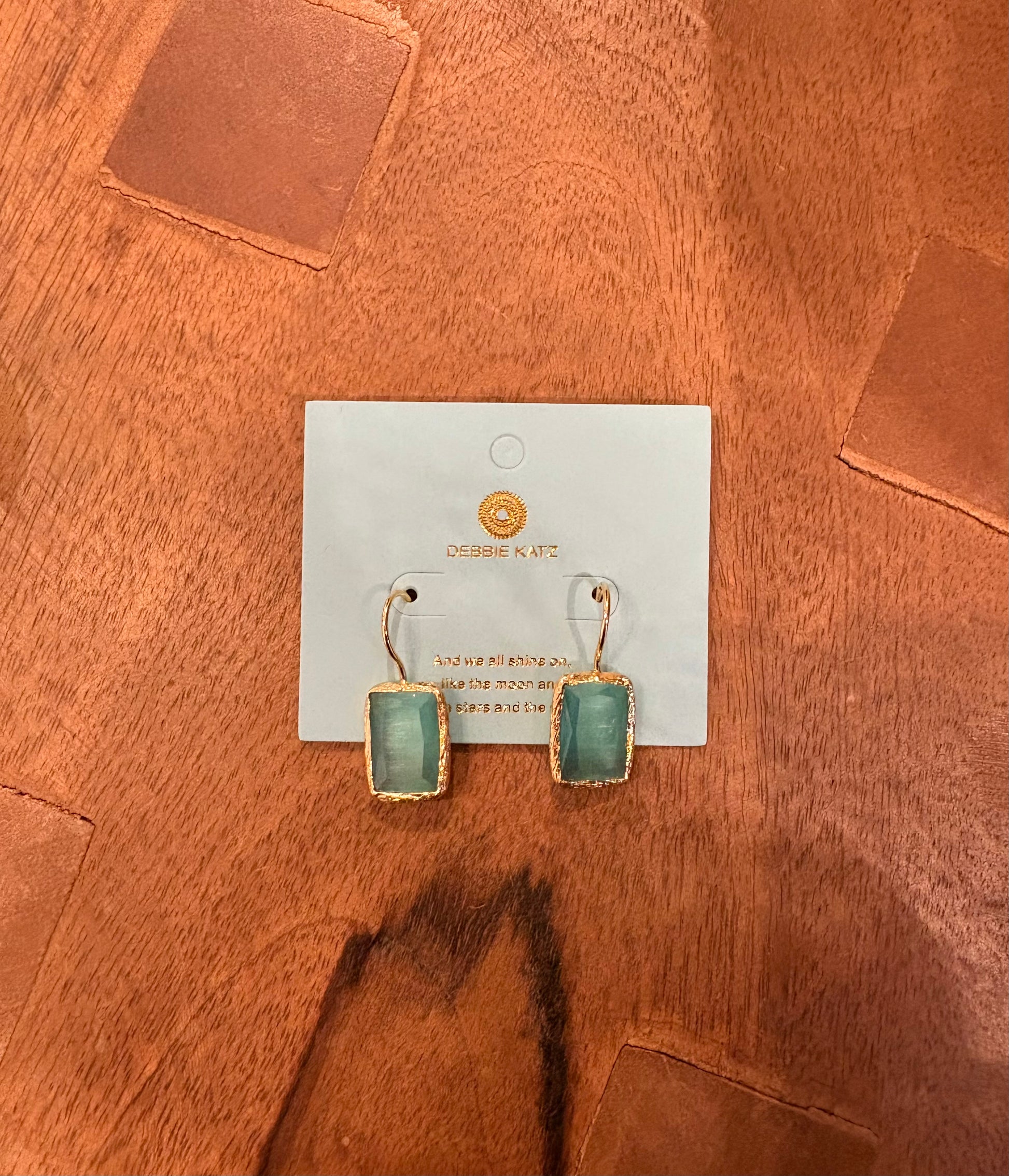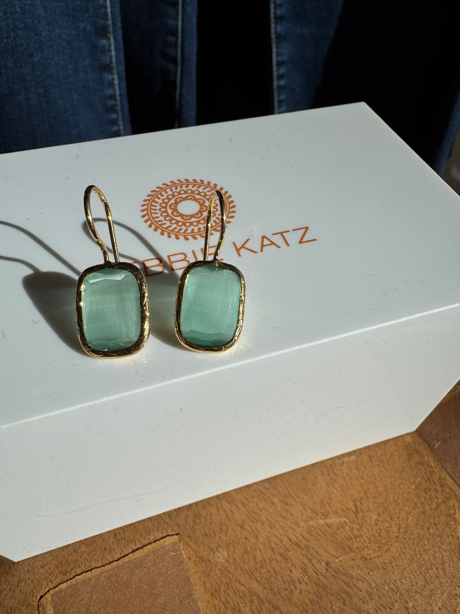 Elevate your style with these elegant and simply-stated Debbie earrings. Crafted from high-quality brass and featuring a rectangular cat eye stone, these earrings add a touch of sophistication to any outfit. Perfect for both casual and formal occasions. Gold-plated.