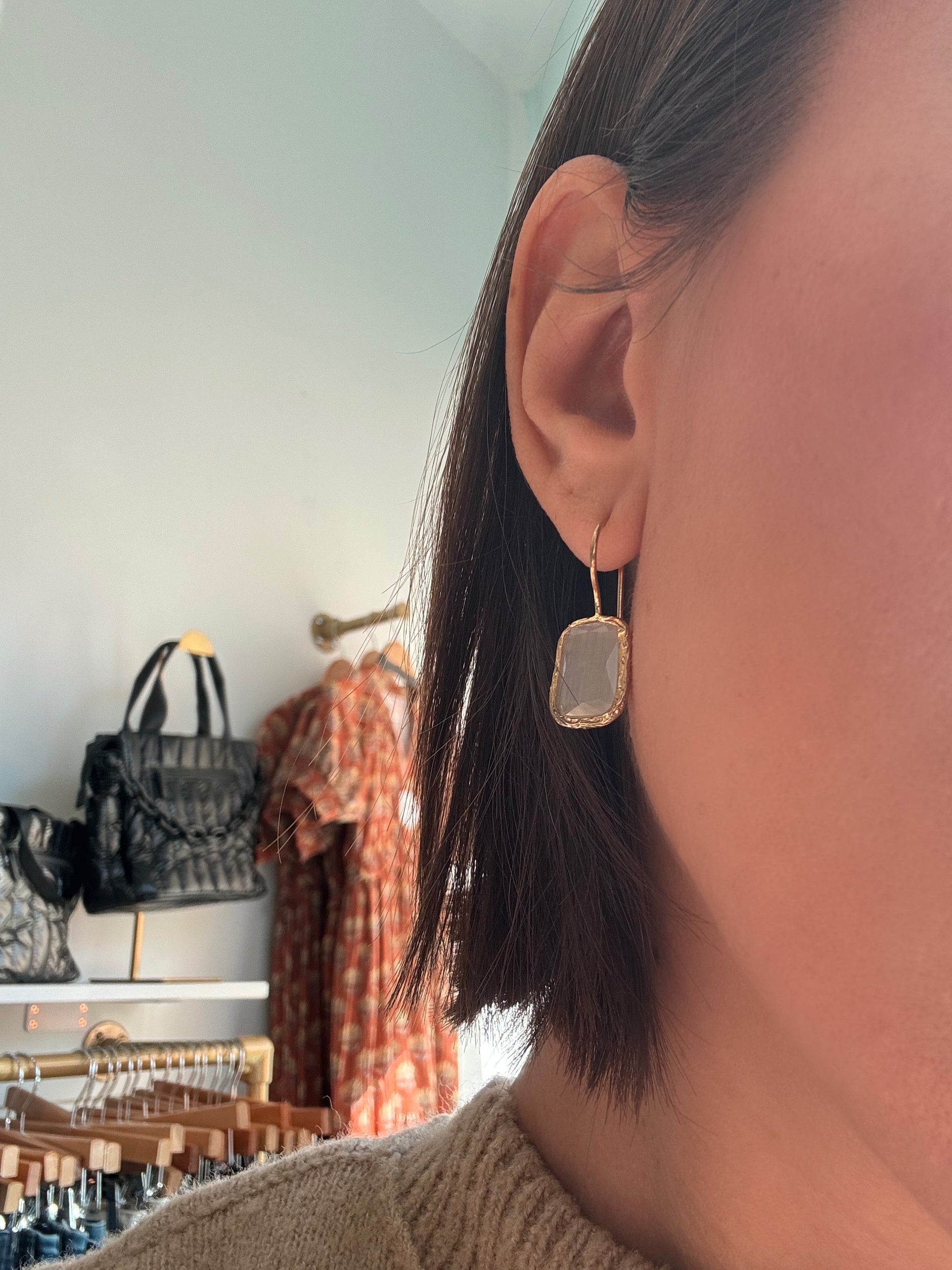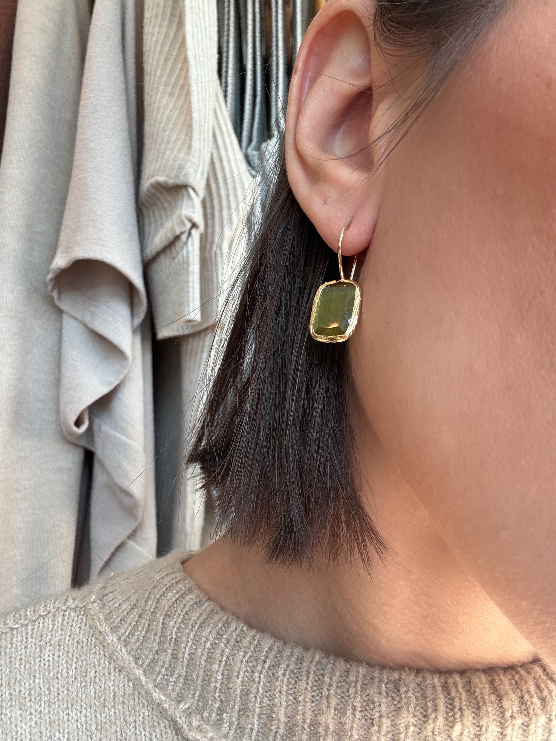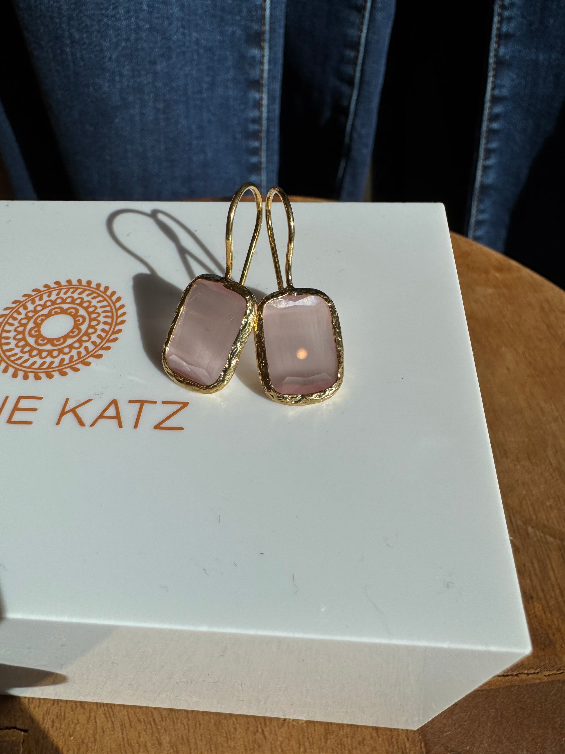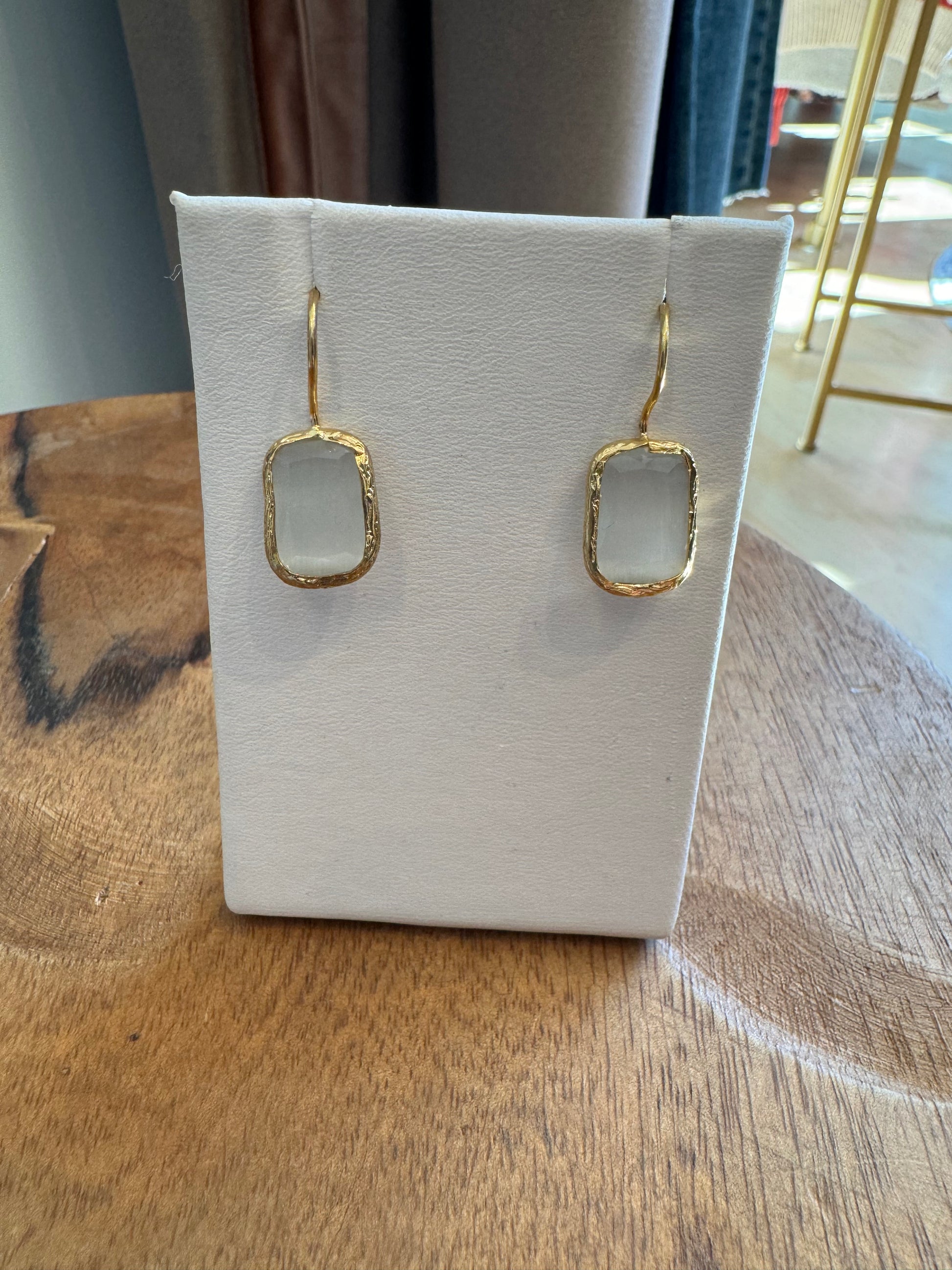 Elevate your style with these elegant and simply-stated Debbie earrings. Crafted from high-quality brass and featuring a rectangular cat eye stone, these earrings add a touch of sophistication to any outfit. Perfect for both casual and formal occasions. Gold-plated.